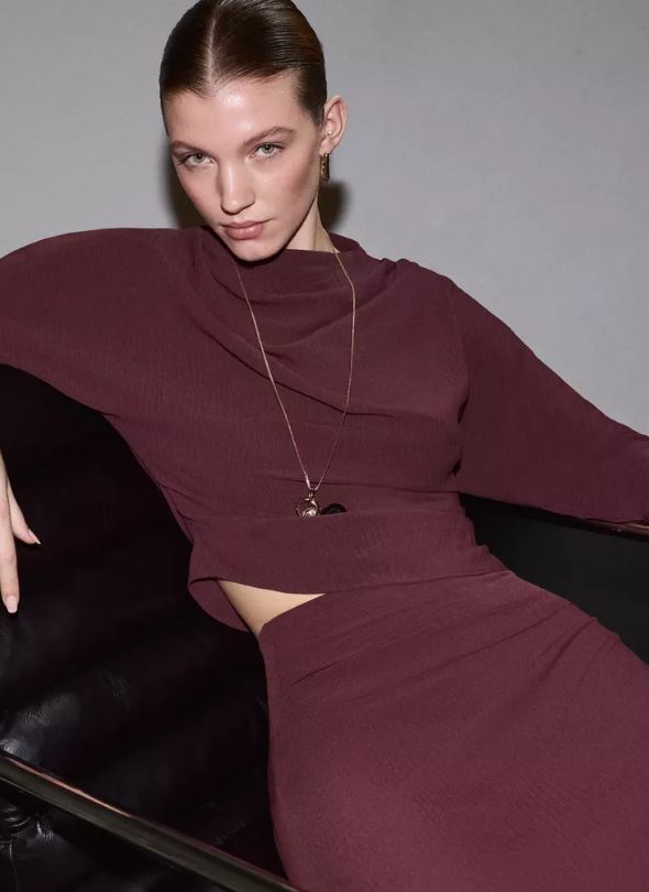 Esta prenda desplaza el foco visual hacia la parte superior del cuerpo, ayudando a compensar el volumen de la zona de las caderas. El resultado es una imagen más armónica y proporcionada, sin sensación de rigidez ni artificio.